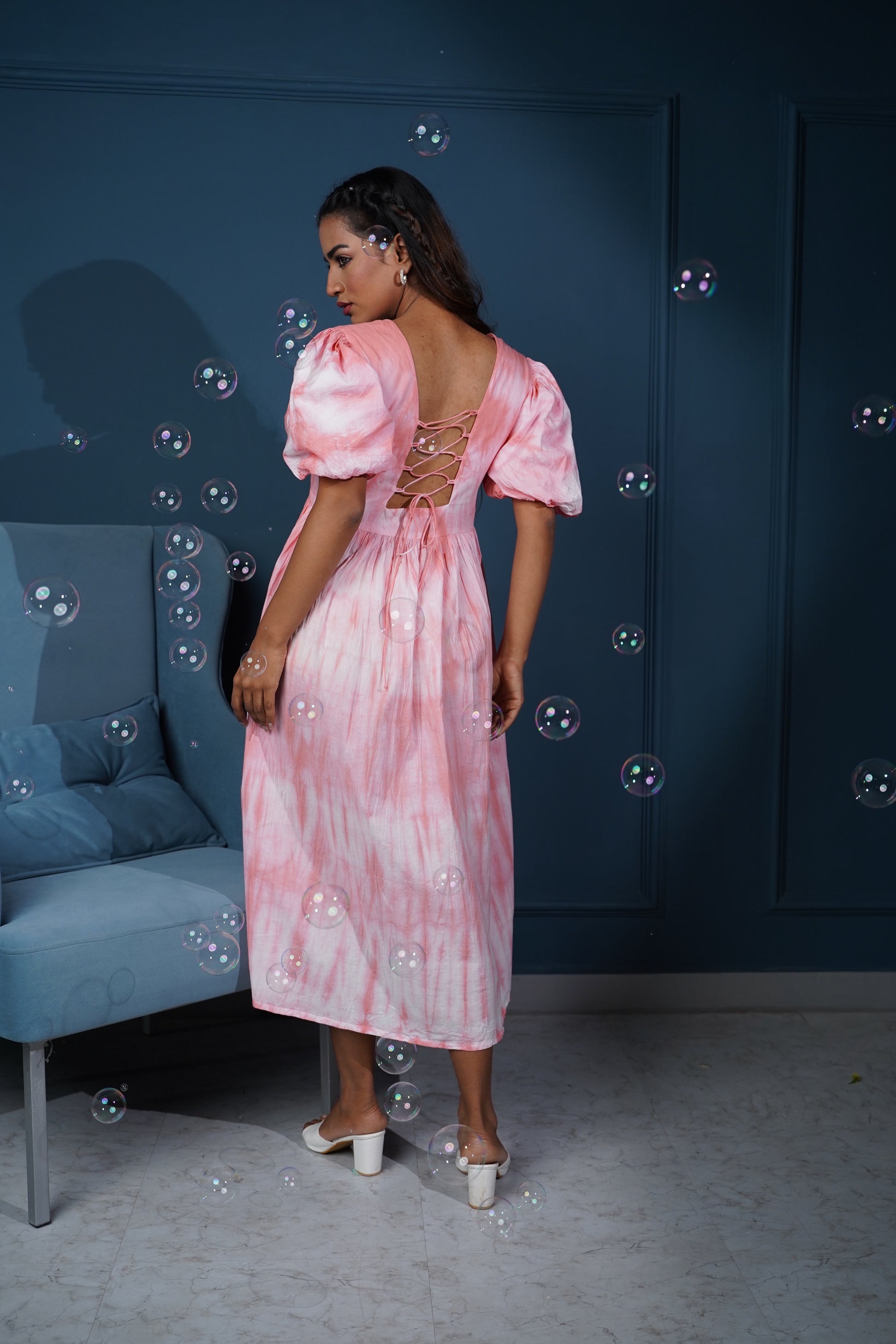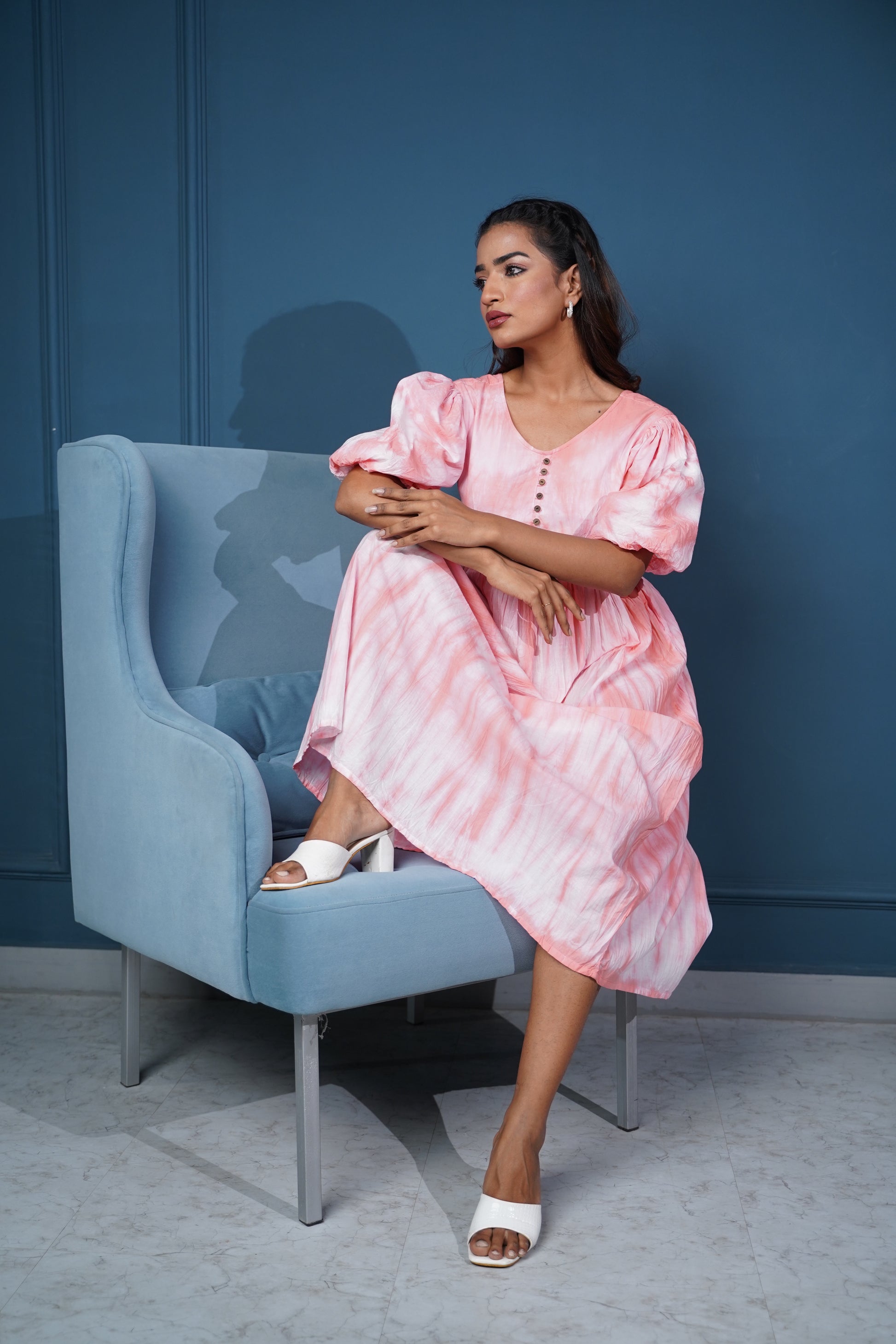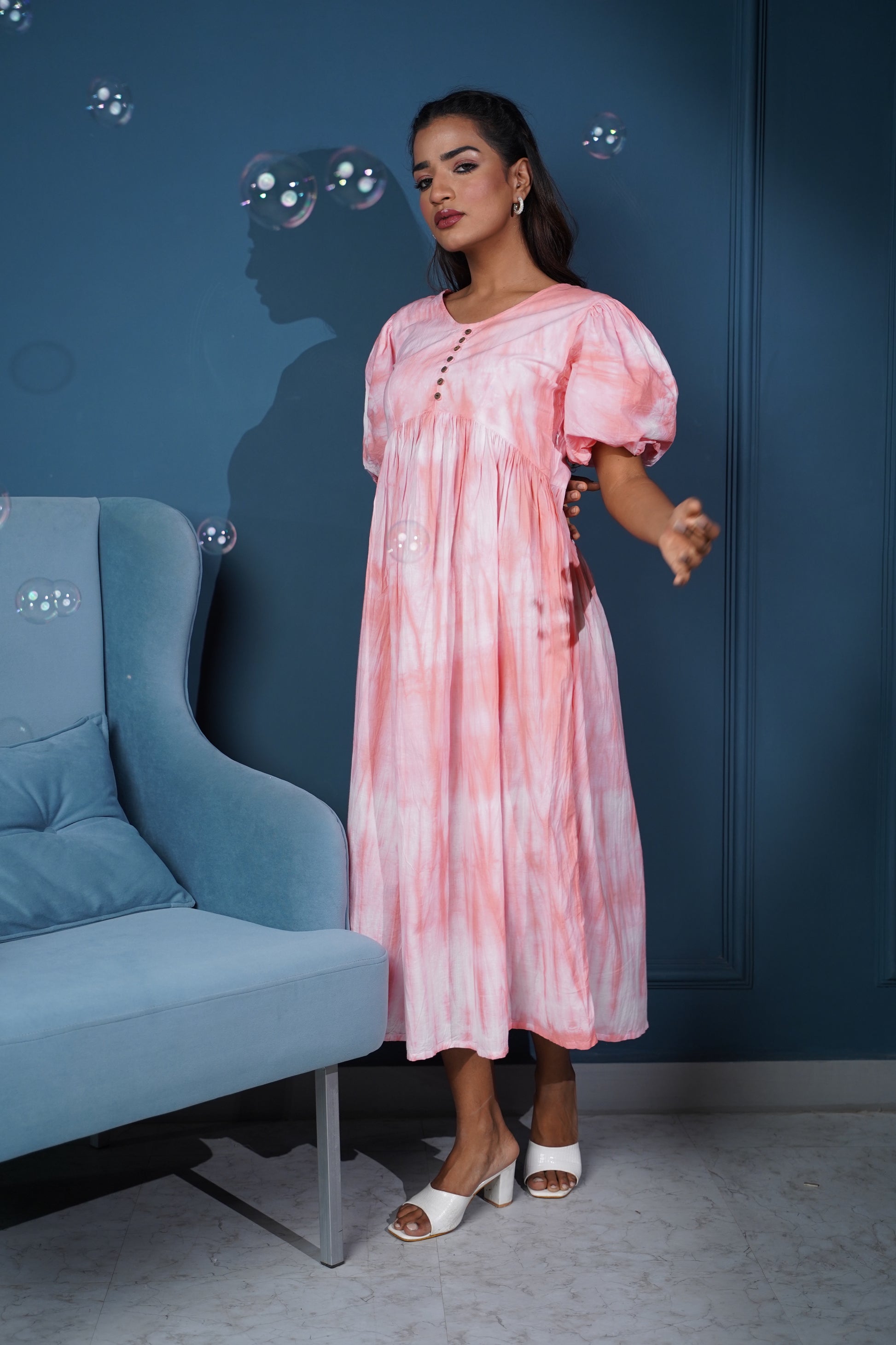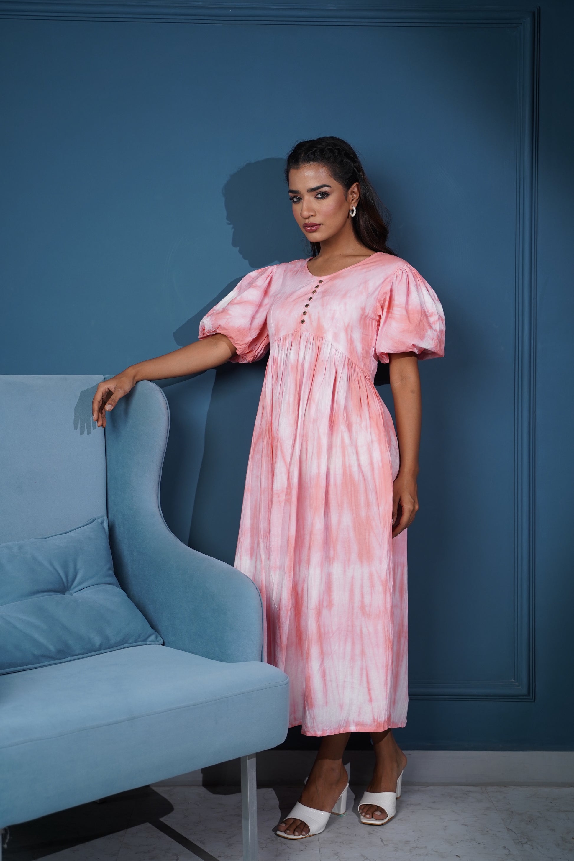 - Make a statement with our handmade tie-dye dress featuring on-trend balloon sleeves