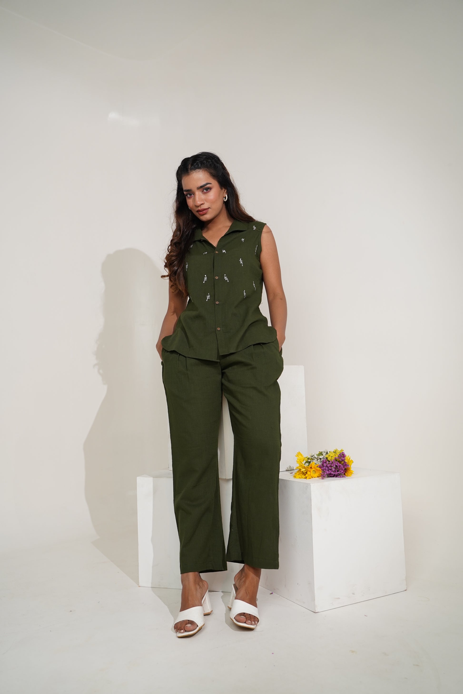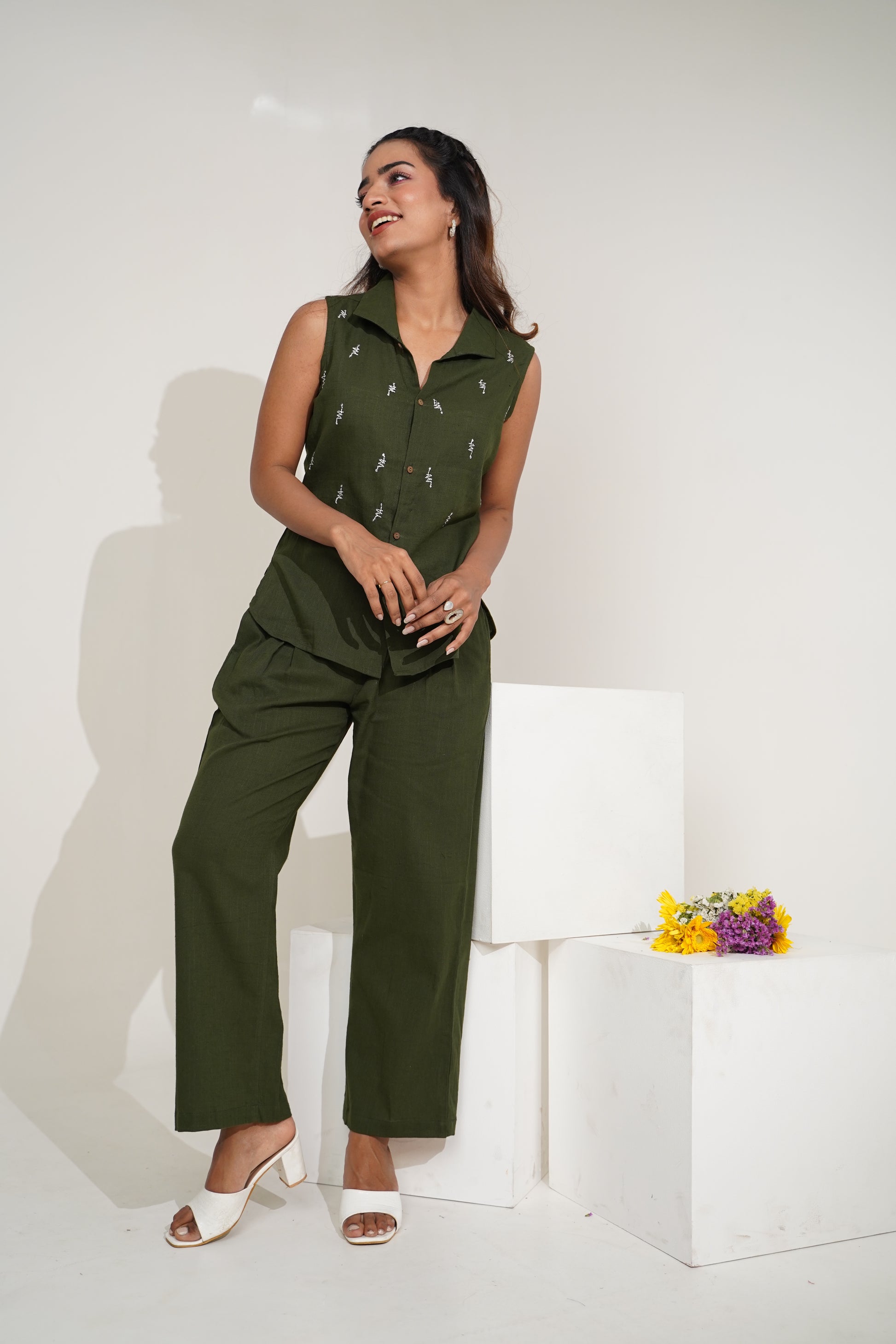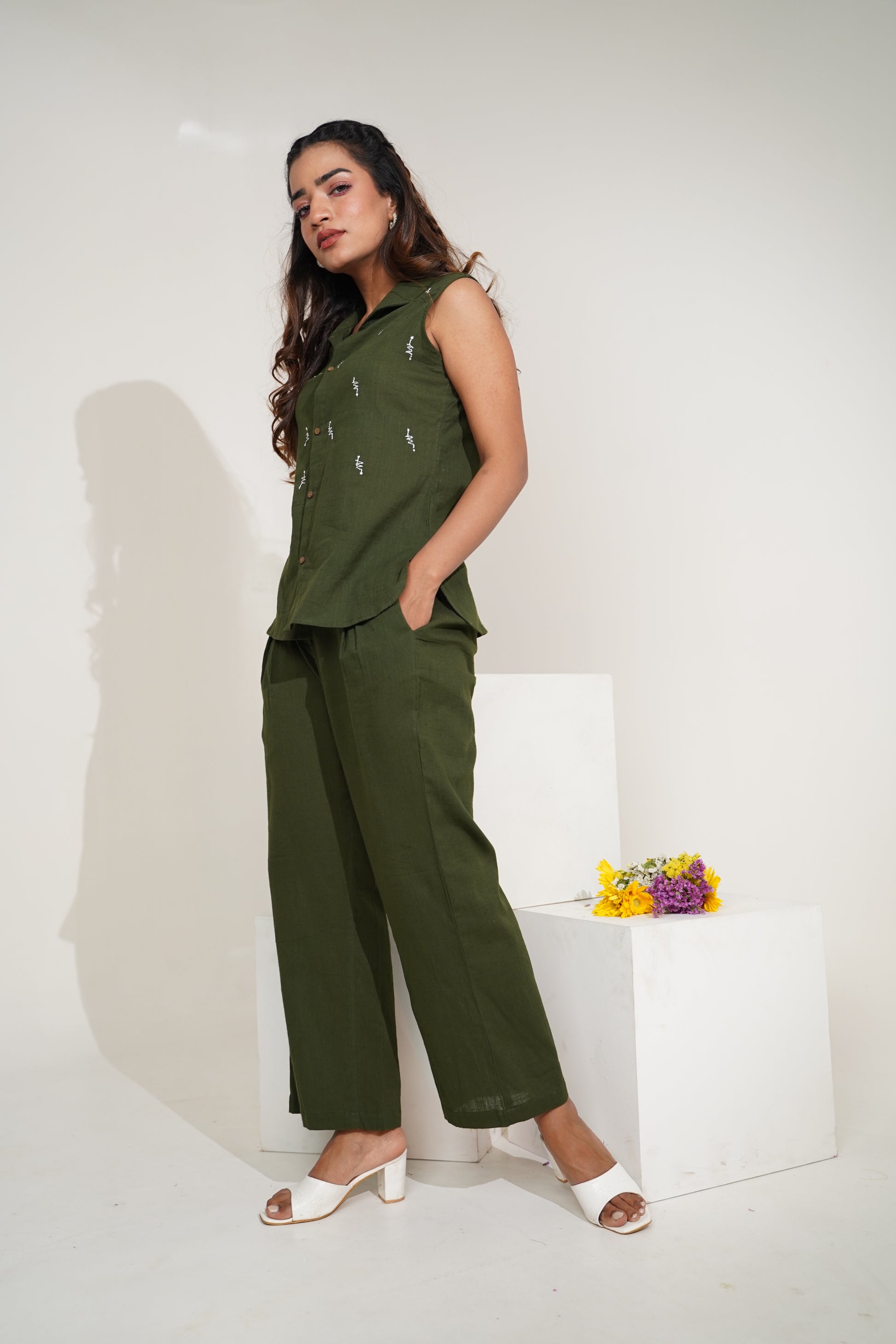 Introducing our stylish Green Cord Set, the perfect addition to your casual wardrobe. This set includes a cozy corduroy Top and matching pants, both made from high-quality fabric that is soft to the touch.
