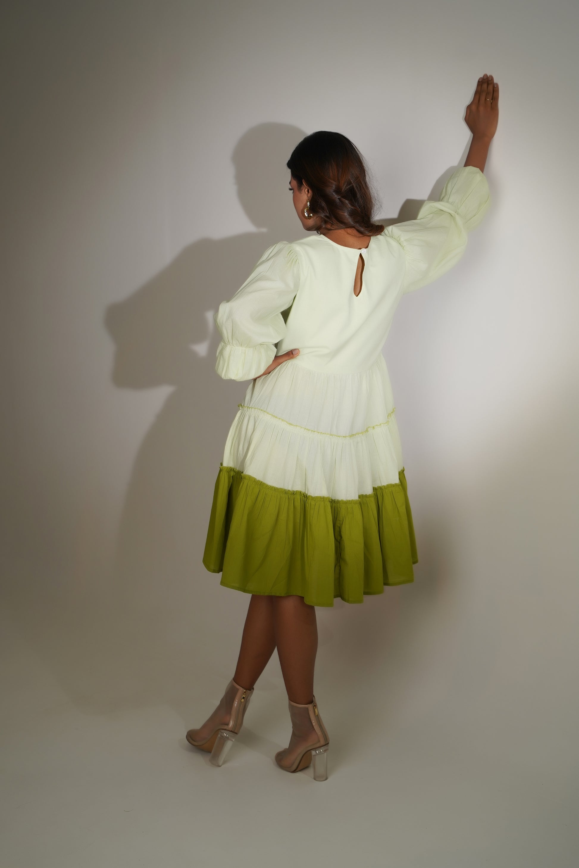 - The dress features puff sleeves that add a feminine touch and create a flattering silhouette