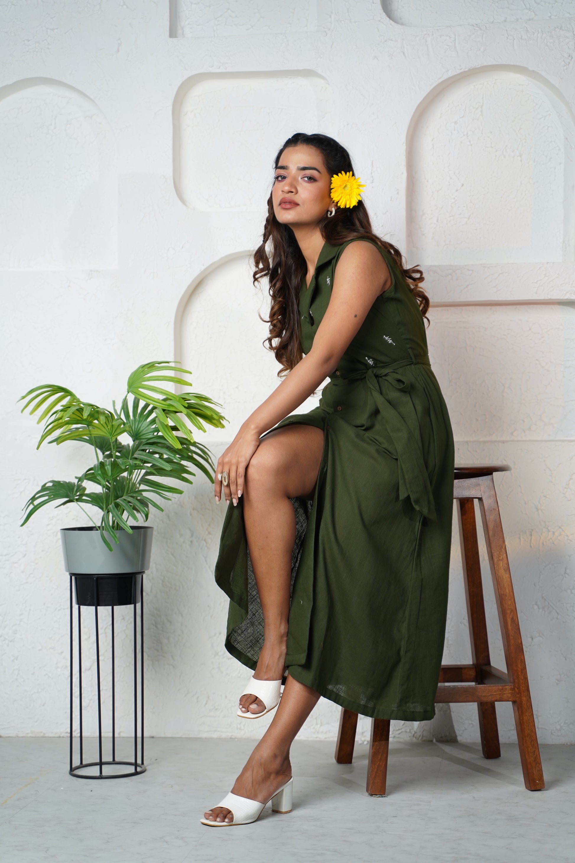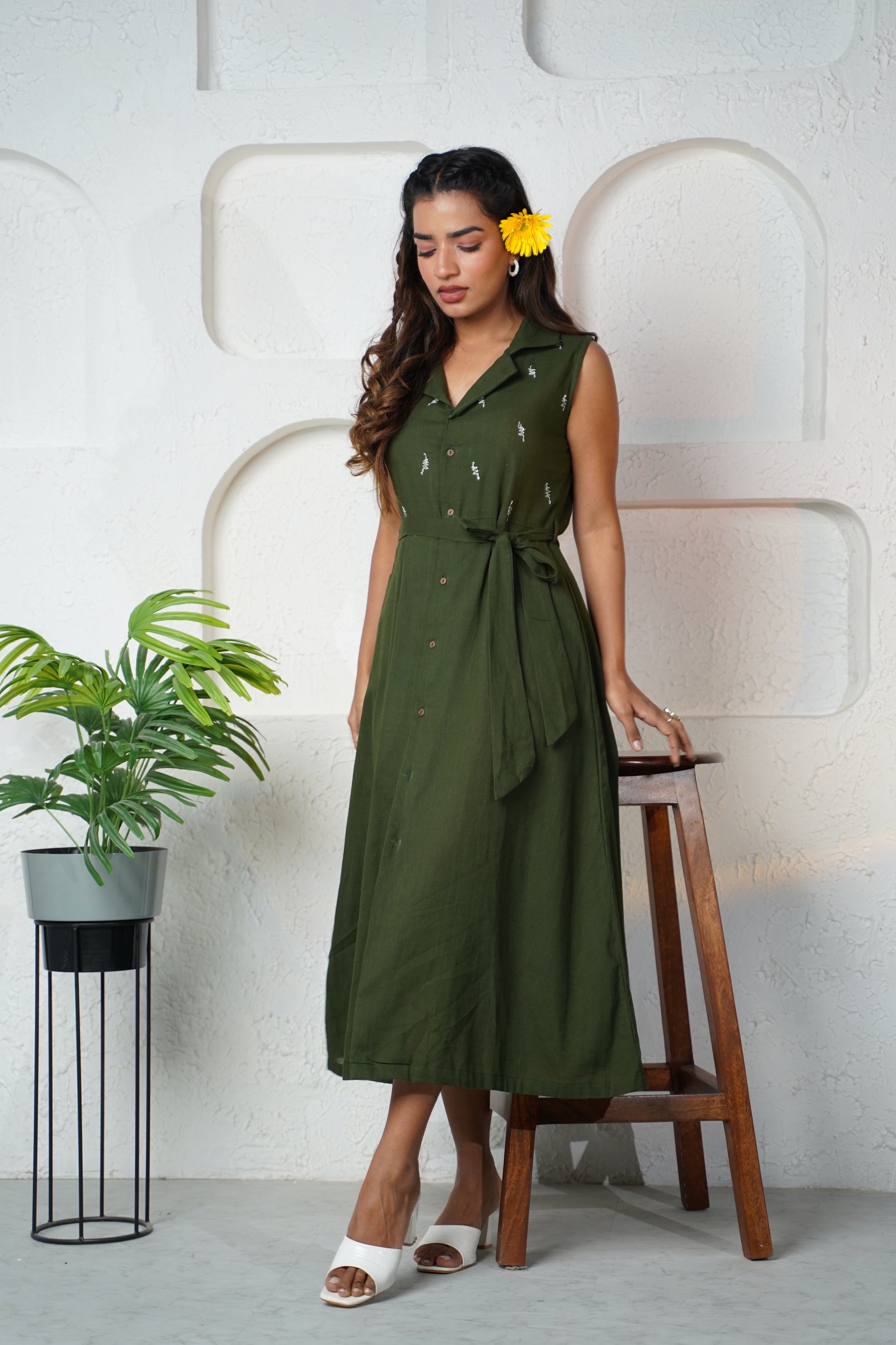 Add a pop of color to your wardrobe with our green dress. Made from Cotton, this dress provides a comfortable and breathable fit, perfect for a variety of occasions.