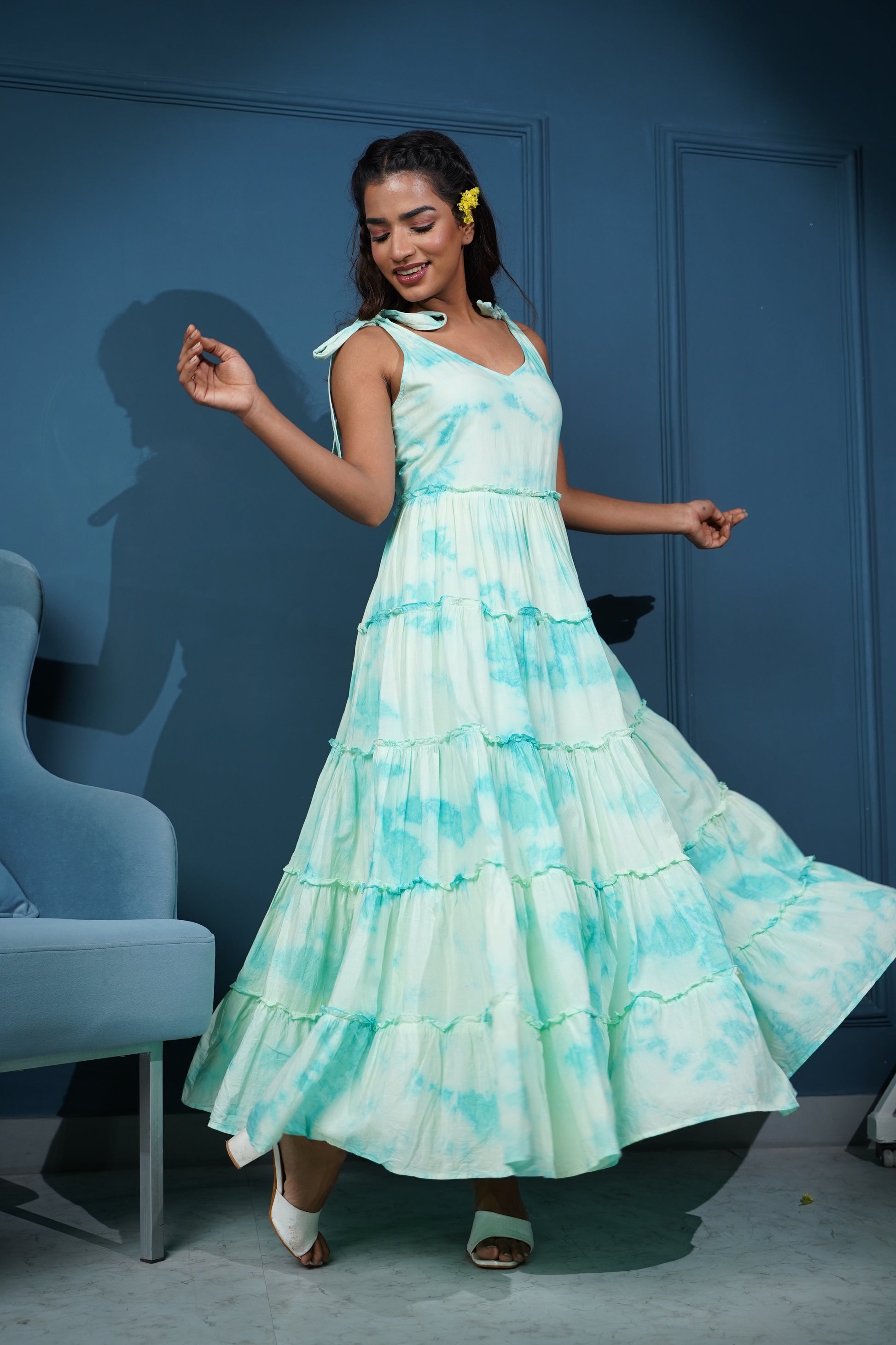 - The tie-dye pattern is created by hand, resulting in a one-of-a-kind dress with subtle variations in color and design