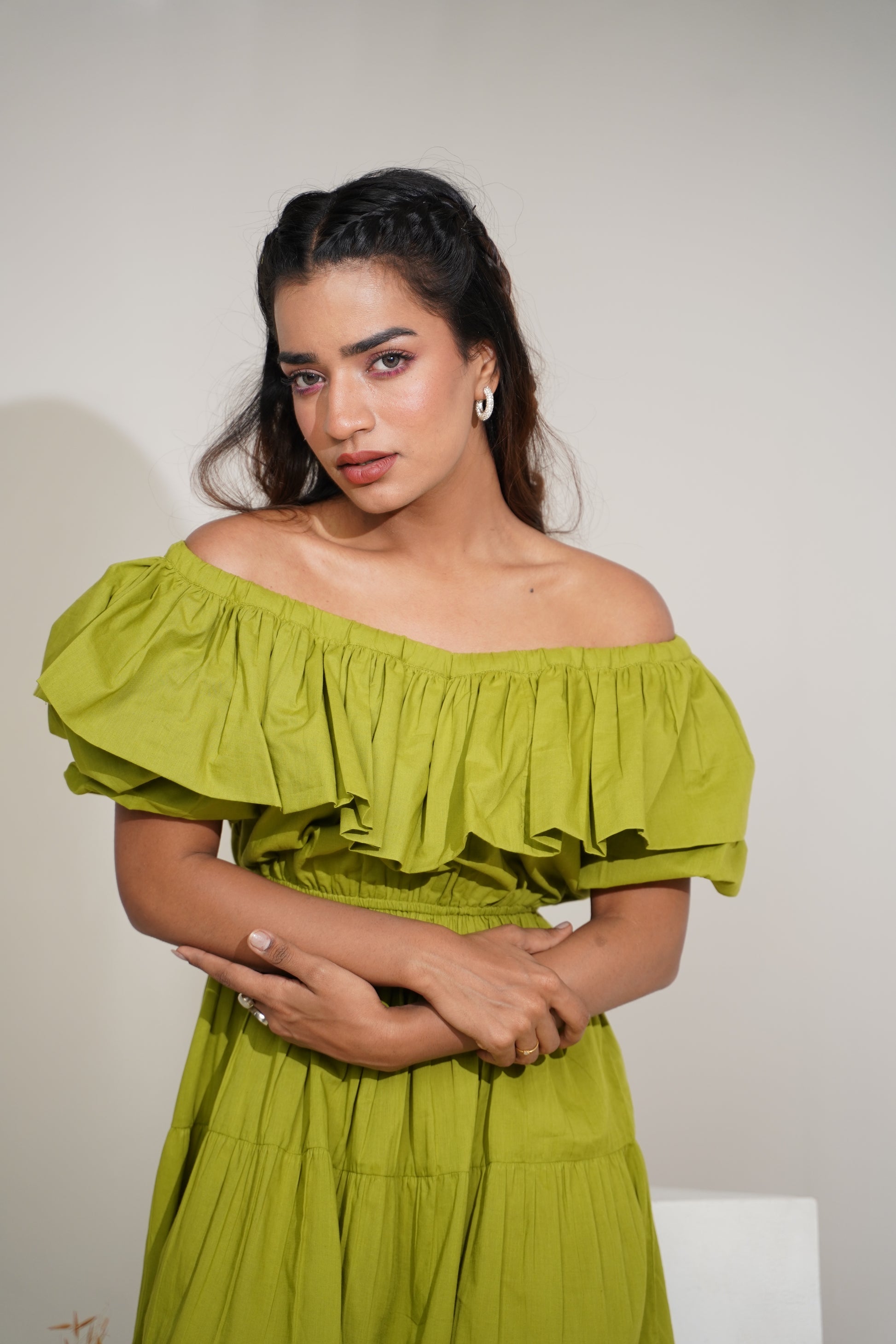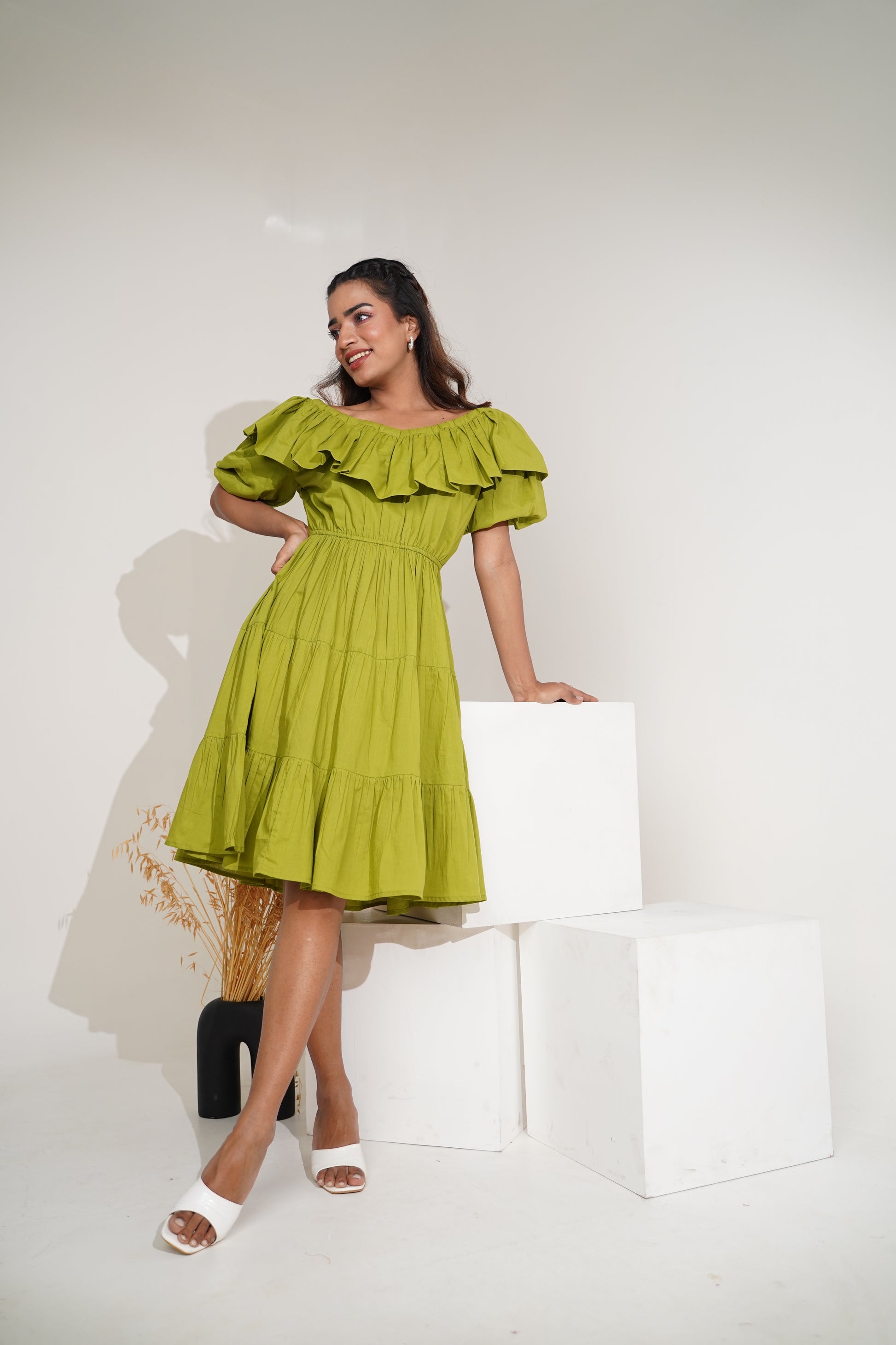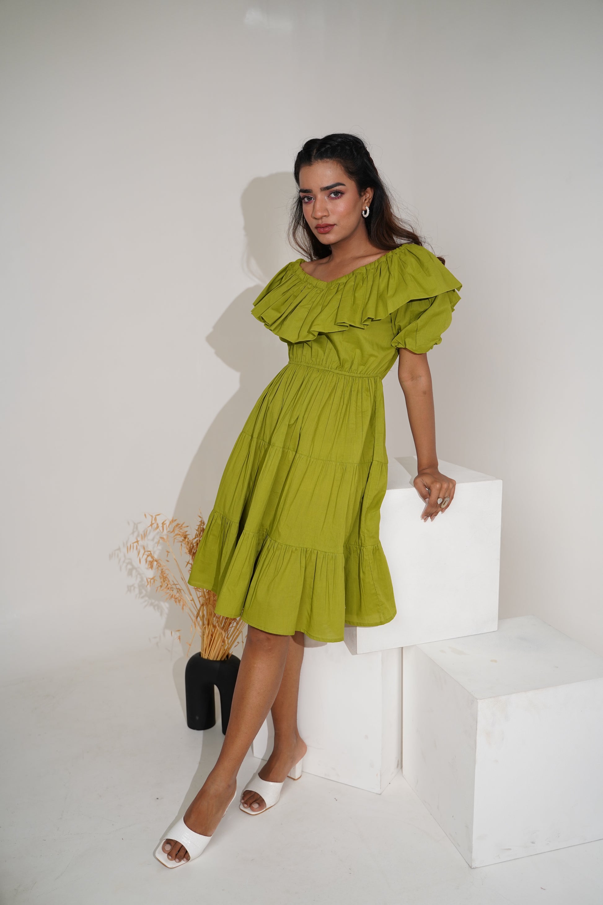 Elevate your wardrobe with this Elegant and Feminine Ruffle Neck Dress. The dress features a sophisticated ruffle neckline that adds a touch of glamour and femininity to the outfit. The soft and lightweight fabric drapes beautifully and the A-line silhouette flatters a variety of body types. The dress has short sleeves and falls at or below the knee for a classic and timeless look.