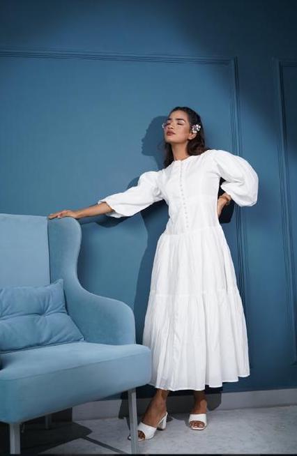- A stunning white dress with beautiful block-printed patterns, adding a unique and eye-catching touch to your wardrobe